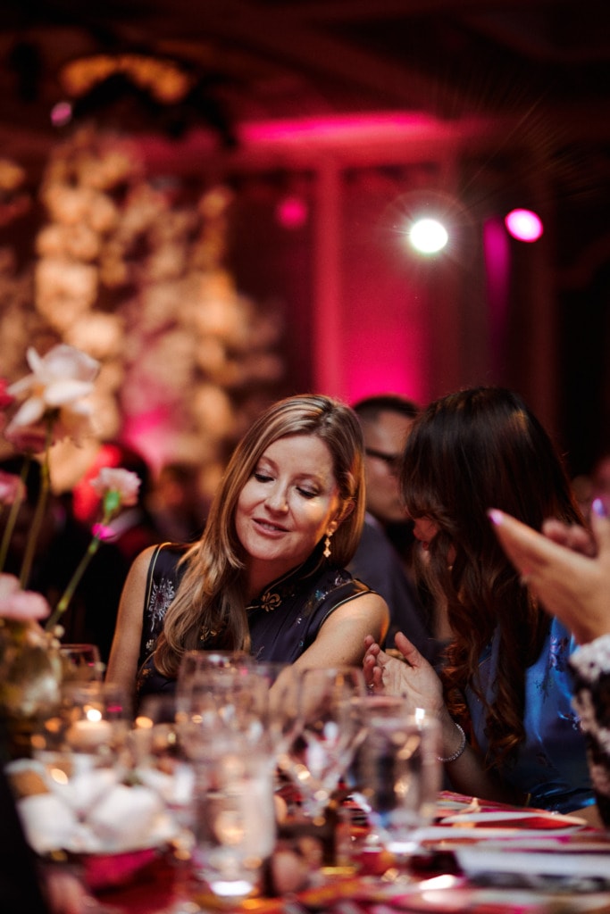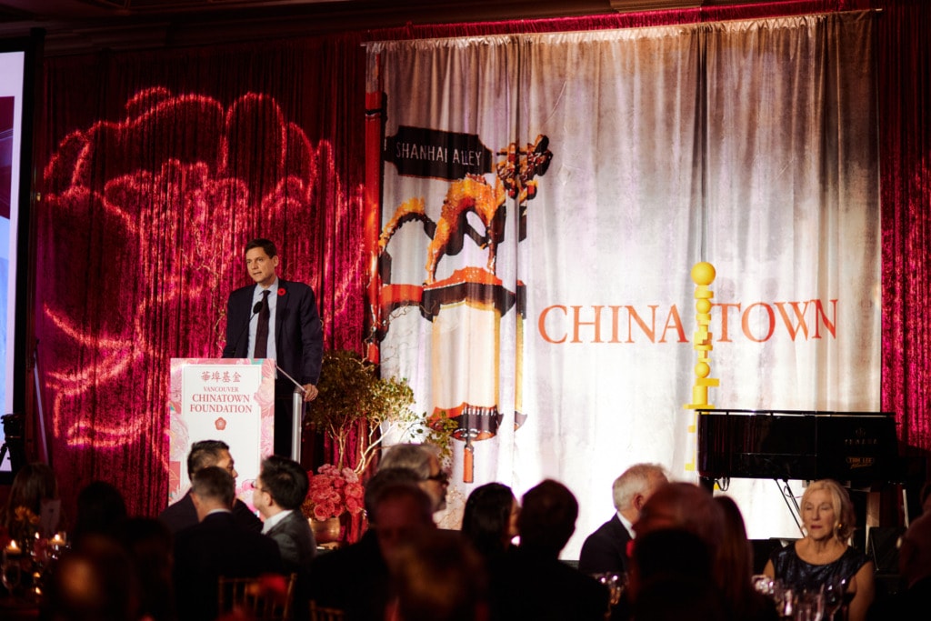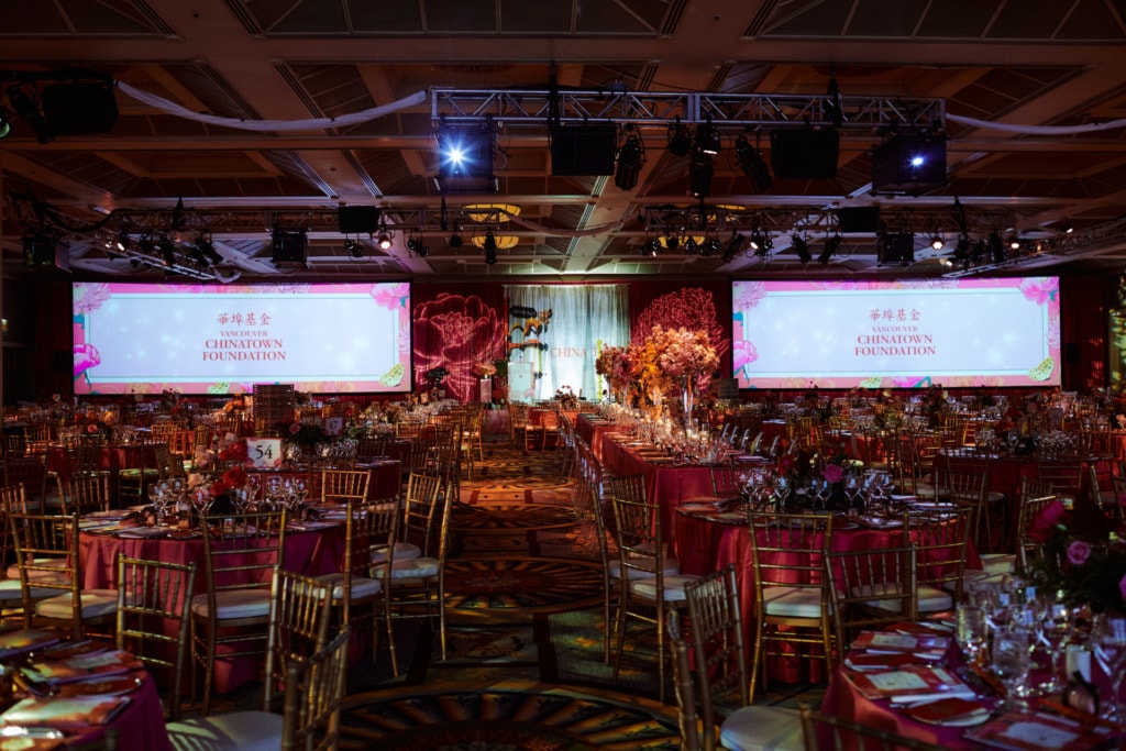 I was asked to photograph and capture the Vancouver Chinatown Foundation’s yearly fundraiser gala, and, wow, the decor and preparation that went into the event were spectacular. It was the most elaborately designed fundraiser gala I have photographed, and it felt like being at an extravagant wedding. The decor, with its intricate details and additional lighting, elevated what was already a beautiful venue. Look closely, and you can see some of the Art Deco chandeliers that adorn the ballrooms. A better way to describe the gala was an experience. The additional lighting and all the small details made you feel as if you stepped into old Chinatown and were invited to their large dinner party. Fitting to the foundation, dinner was dim sum! Details matter. Take a look at what was part of the table settings; once again, everything was in the details.