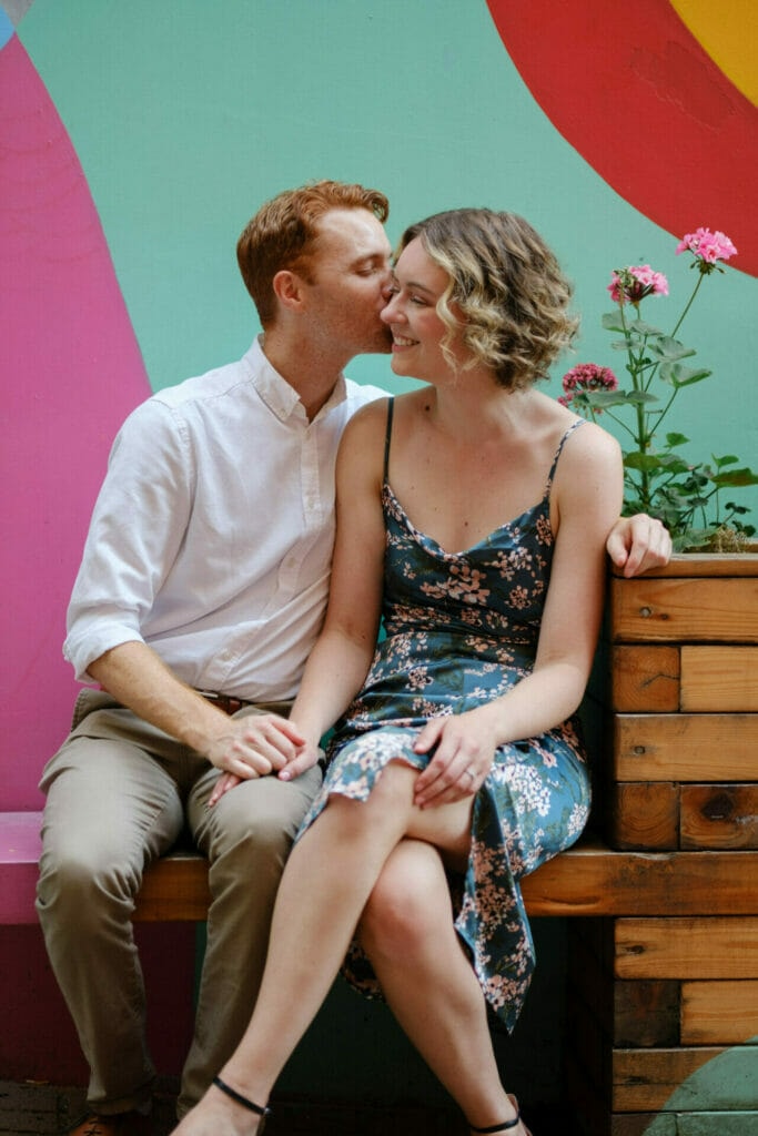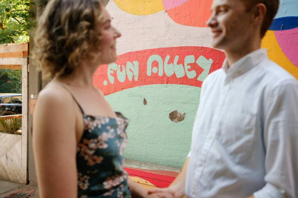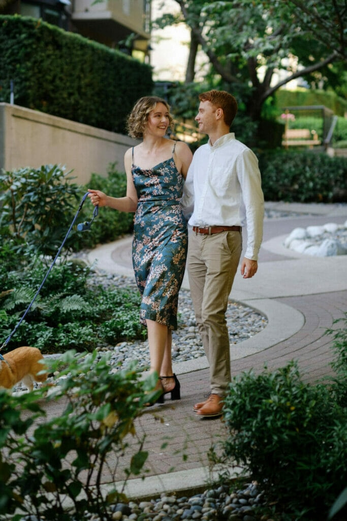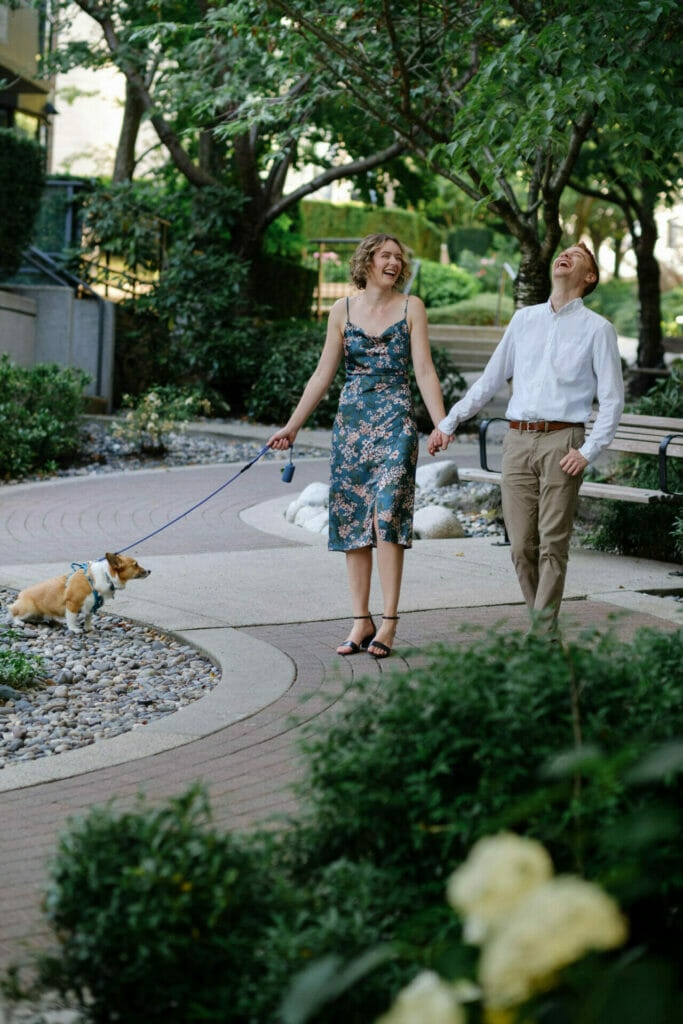 Megan and Chris invited me to capture their anniversary party with their close friends and family this past summer in North Vancouver. As part of the coverage, they asked if I could take some photos with their immediate family and also a small mini-portrait session of the two of them. We set aside some time before the event to do these within walking distance of the venue. I hadn’t photographed in the area before but there were a lot of great backdrops in Upper Lonsdale, all in the same block. Having been married so long, Megan and Chris were naturally in tune and had great chemistry which made my job so much easier. This mini couple portrait session went by quickly and I got some great moments of both of them and their dog.