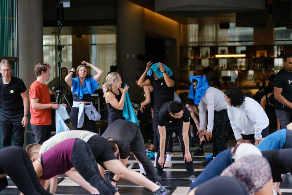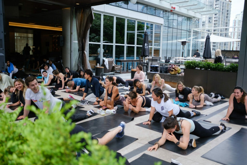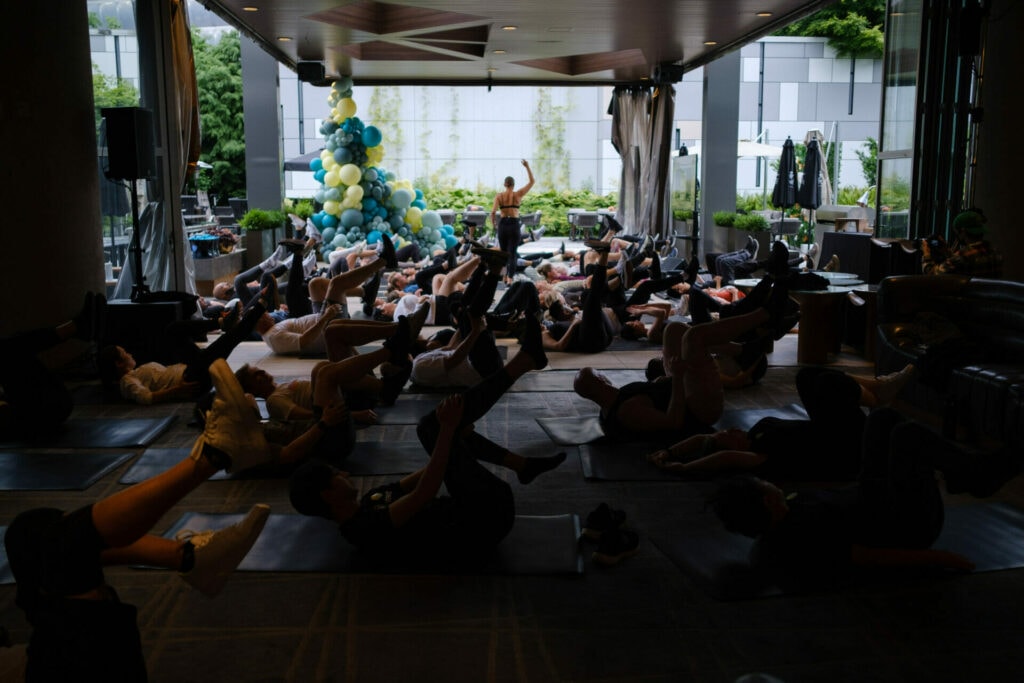 It’s not often you get asked to photograph a corporate event party that might otherwise be mistaken for a workout class. It made total sense to work in (get it?) a workout at Trainerize’s corporate event. Not only was it fun (heck, I wanted to join in!), it probably made everyone feel less guilty drinking and eating (healthy food) afterward. A great venue (JW Marriot Parq Vancouver), a good DJ, and an excellent fitness instructor equal a good recipe for a high-energy, feel-good, corporate party or retreat. Trainerize is an app for entrepreneurial trainers that help manage and engage with their clients. Check out some of the fun below. If you have an upcoming company retreat or party and are looking to capture some great moments, don’t hesitate to reach out for a quote!