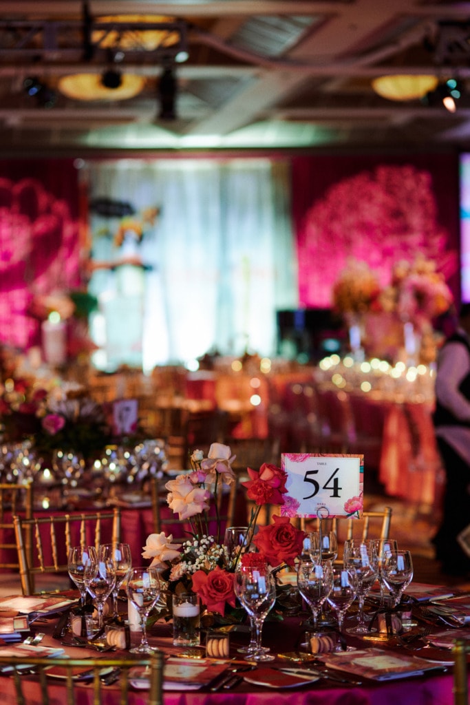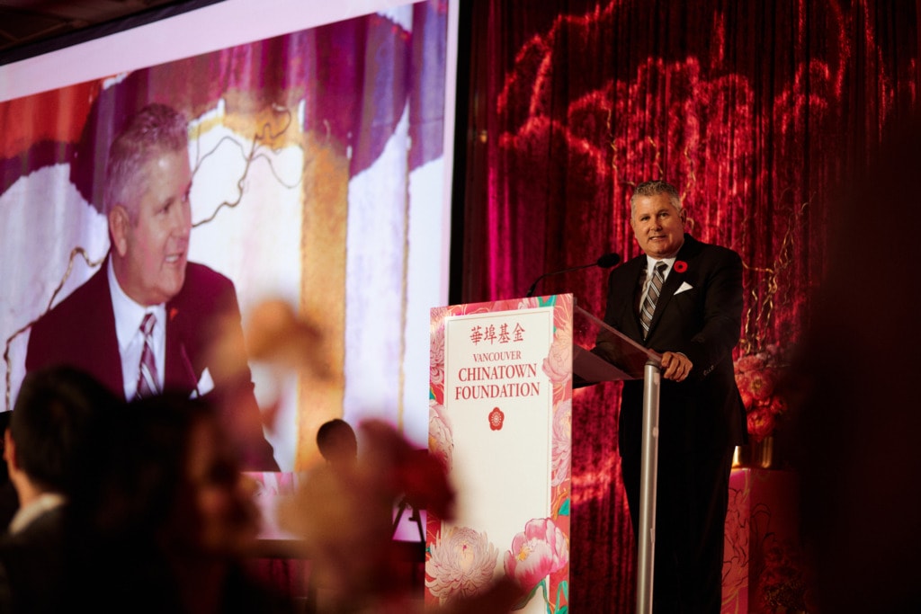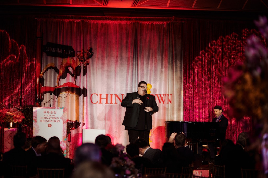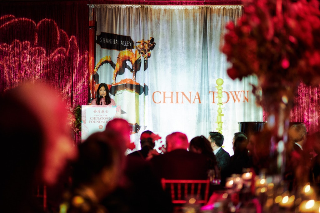 I was asked to photograph and capture the Vancouver Chinatown Foundation’s yearly fundraiser gala, and, wow, the decor and preparation that went into the event were spectacular. It was the most elaborately designed fundraiser gala I have photographed, and it felt like being at an extravagant wedding. The decor, with its intricate details and additional lighting, elevated what was already a beautiful venue. Look closely, and you can see some of the Art Deco chandeliers that adorn the ballrooms. A better way to describe the gala was an experience. The additional lighting and all the small details made you feel as if you stepped into old Chinatown and were invited to their large dinner party. Fitting to the foundation, dinner was dim sum! Details matter. Take a look at what was part of the table settings; once again, everything was in the details.